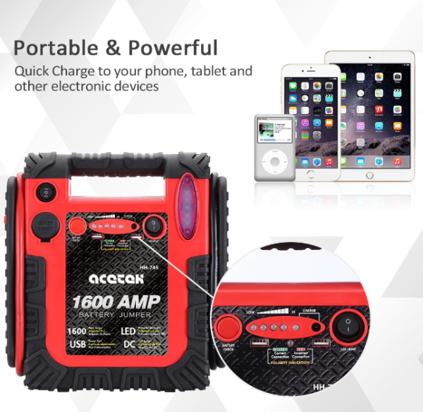 Acetek 1600 Amp Car Jump Starter: Power and Portability in One Pack