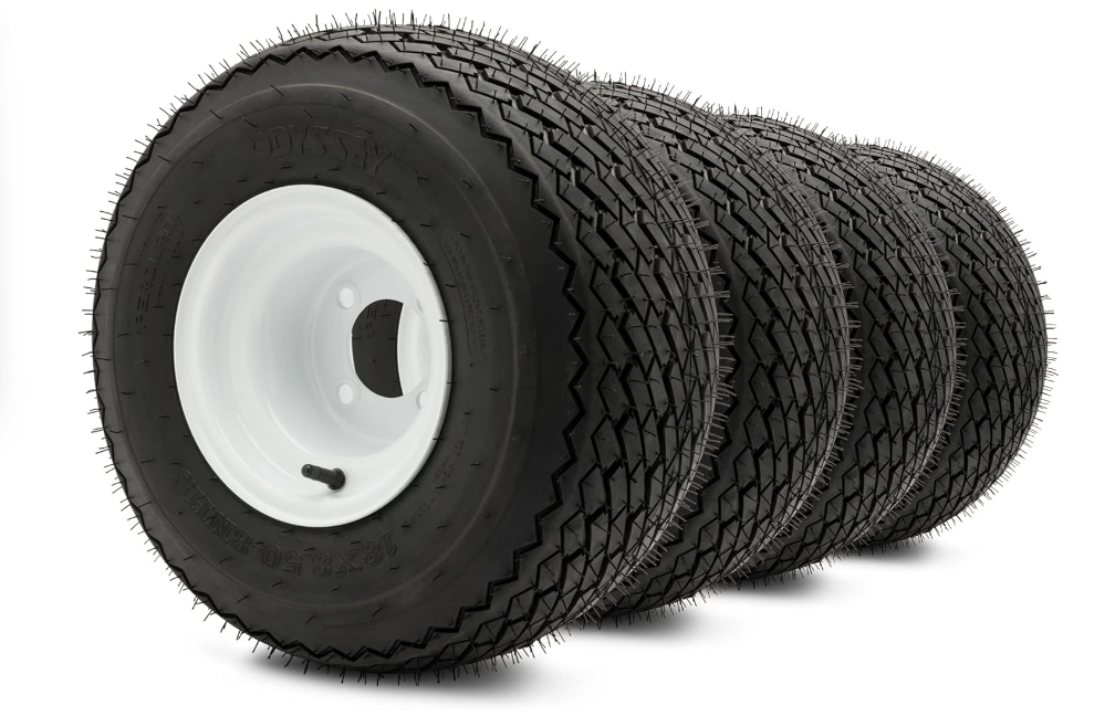 In summary, the Golf Cart King 8″ Glossy White Steel Wheels with Odyssey Perduro (18/8.5-8) DOT Golf Cart Tires are an excellent investment for any golf cart owner. With their stylish design, durable construction, enhanced performance, and easy installation, they stand out as a top choice in the market. Elevate your golfing experience today with this reliable and attractive wheel and tire set. Don’t miss the opportunity to enhance both the look and performance of your golf cart—make the switch today!